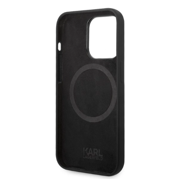 Karl Lagerfeld Silicone Ikonik MagSafe case for iPhone 14 Pro - blackKarl Lagerfeld Silicone Ikonik MagSafe dėklas iPhone 14 Pro – juodas
