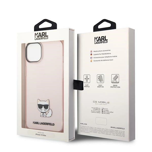 Karl Lagerfeld Skaidrus Choupette Body dėklas iPhone 14 Plus / 15 Plus 6.7” – rožinis