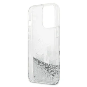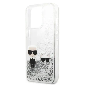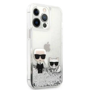 Karl Lagerfeld Liquid Glitter Karl&Choupette case for iPhone 13 Pro Max 6.7" - silverKarl Lagerfeld skystų blizgučių Karl & Choupette dėklas iPhone 13 Pro Max 6.7” – sidabrinis