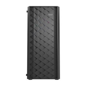 The DK351 case impresses not only with its functionality, but also with its modern design. Its side panel was made of high-quality tempered glass, so you can get interesting visual effects, for example, with the use of RGB fans. What’s more, if necessary, you can easily disassemble it to replace parts or clean the hardware. The front panel of the case is also eye-catching, with its original industrial design.