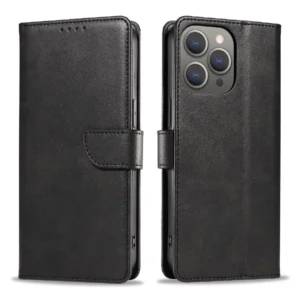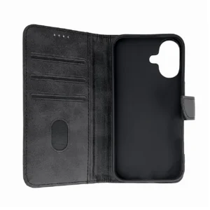Leather Book Case for iPhone 16 – black