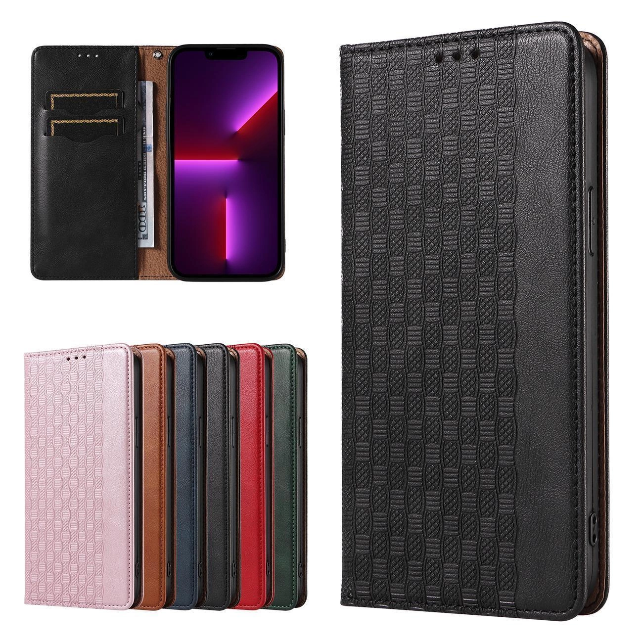 Samsung Galaxy S23 Series Magnet Strap Case cover with a flip cover with a wallet function and a stand in black