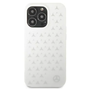 Mercedes MEHCP13XESPWH iPhone 13 Pro Max 6,7″ baltas kietasis dėklas Sidabrinės žvaigždutės raštas