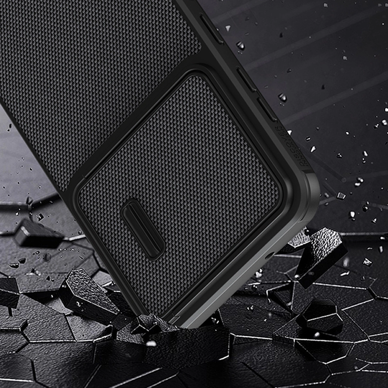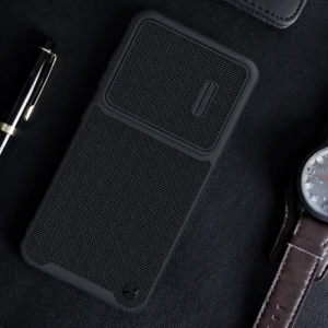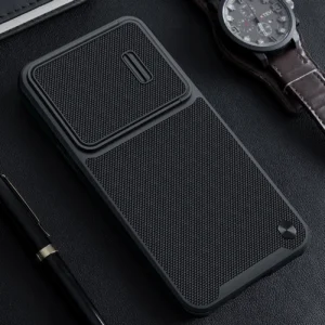The Nillkin Textured S Case is made of high-quality materials. The unusual back panel of the cover has a pleasant-to-touch nylon fiber coating. Not only does it provide an interesting finish and design, but it is also comfortable and prevents the device from slipping out of your hand. The cover is tailored to the Samsung Galaxy S23 and perfectly protects it against damage caused by falls or scratches (for example by keys carried in a pocket). The case has a sliding cover for the rear camera. Thanks to it, the camera glass is protected against scratches. There is also an additional advantage for people who value the privacy and security of their data. The covered camera prevents access to video recording if someone gains remote access to the phone and turns on the view from the main camera. Raised edges around the screen protect it from scratches when it is placed on a flat surface.