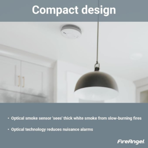Optinis dūmų detektorius FireAngel SW1-EUT – tai patikimas ir sertifikuotas sprendimas, skirtas ankstyvam dūmų aptikimui gyvenamosiose ir komercinėse patalpose. Detektorius naudoja optinę dūmų aptikimo technologiją, kuri ypač efektyviai reaguoja į lėtai besivystančius gaisrus ir didelį dūmų kiekį, todėl leidžia laiku perspėti apie galimą pavojų.