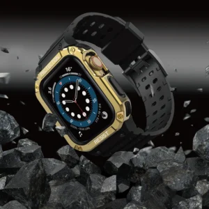 Protect Strap Band for Apple Watch 38/40/41mm Armored Case Strap – Black, Gold