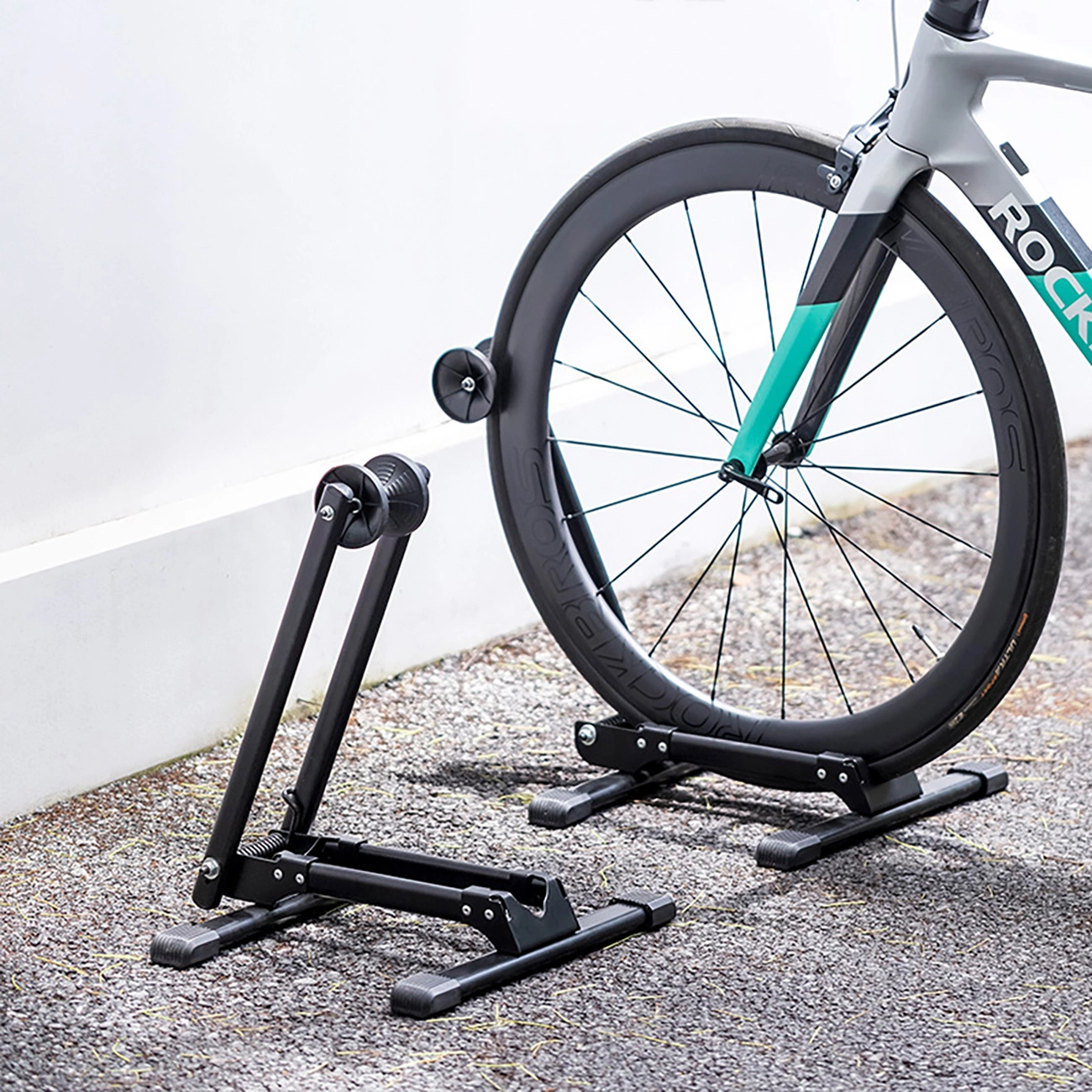 - Guarantees stability . Anti-slip plastic pads protect the floor and provide stable support for the bike.