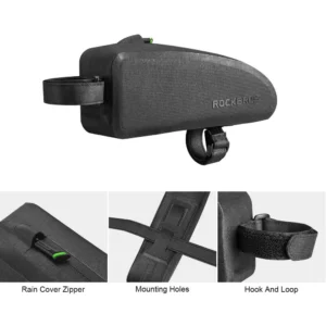 Assembling the Rockbros AS-019-1 bicycle bag is extremely easy thanks to the adjustable Velcro system. You can quickly install it on your bike without tools. Universal mountings make the bag fit most mountain and road bikes, making it an extremely versatile accessory.