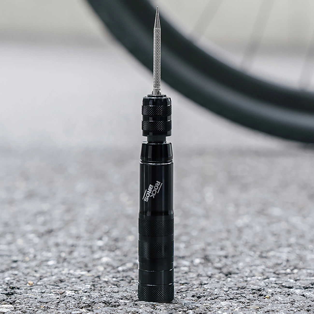 The Rockbros Tubeless Tire Repair Kit is a compact, solid and reliable tool that every cyclist should have on hand. Made of durable aluminum alloy and equipped with hardened carbon steel elements, it allows for quick and effective repair of tubeless tires in all conditions. With three tool tips and five sealing tapes made of high-quality vulcanized rubber, it can handle a variety of failures. Everything is housed in one, lightweight and handy housing with a threaded cover that provides protection against dust and water. The ergonomic handle with non-slip structure makes it easy to use, and the quick assembly system means you're ready to go in seconds. This is an irreplaceable solution for both everyday rides and long off-road trips.