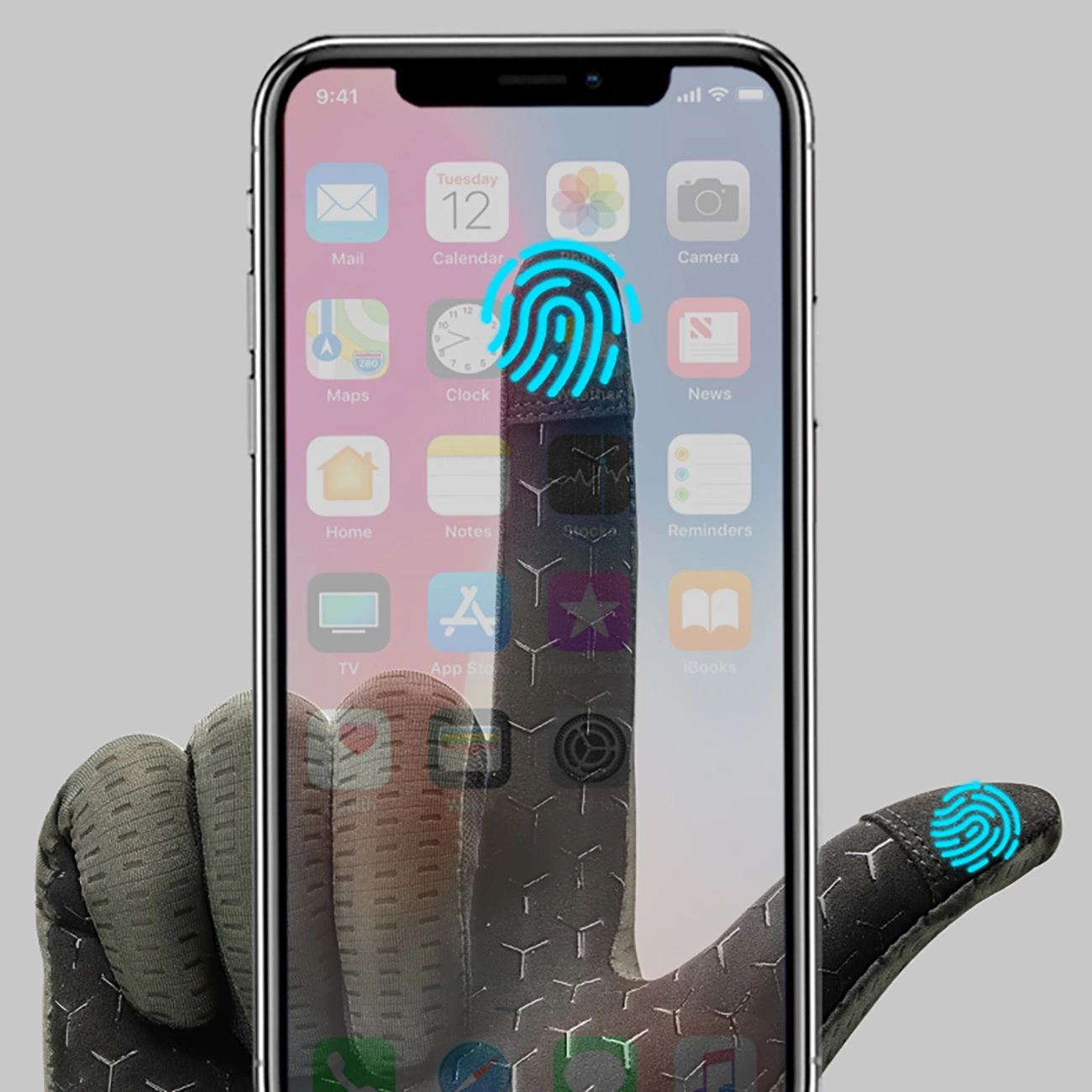 - Touchscreen support: Two fingers equipped with conductive fabric allow you to comfortably use your smartphone or navigation.