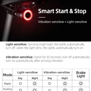 The most important advantages of the Rockbros Q3 rear bike light with intelligent stop system – black: