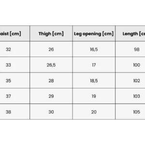 | Size | 1) External length (cm) | 2) Inner length (cm) | 3) Waist circumference (cm) | 4) Thigh circumference (cm) | 5) Calf circumference (cm) |