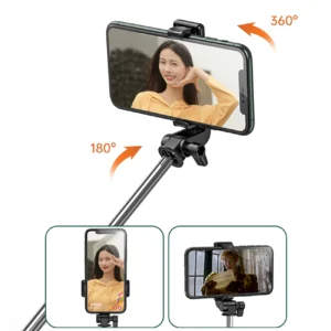 The WHS1Y selfie stick is made of high-quality materials that make it both light and durable. Its non-slip handle ensures a firm grip, and the hidden triangular tripod guarantees stability even in difficult conditions.