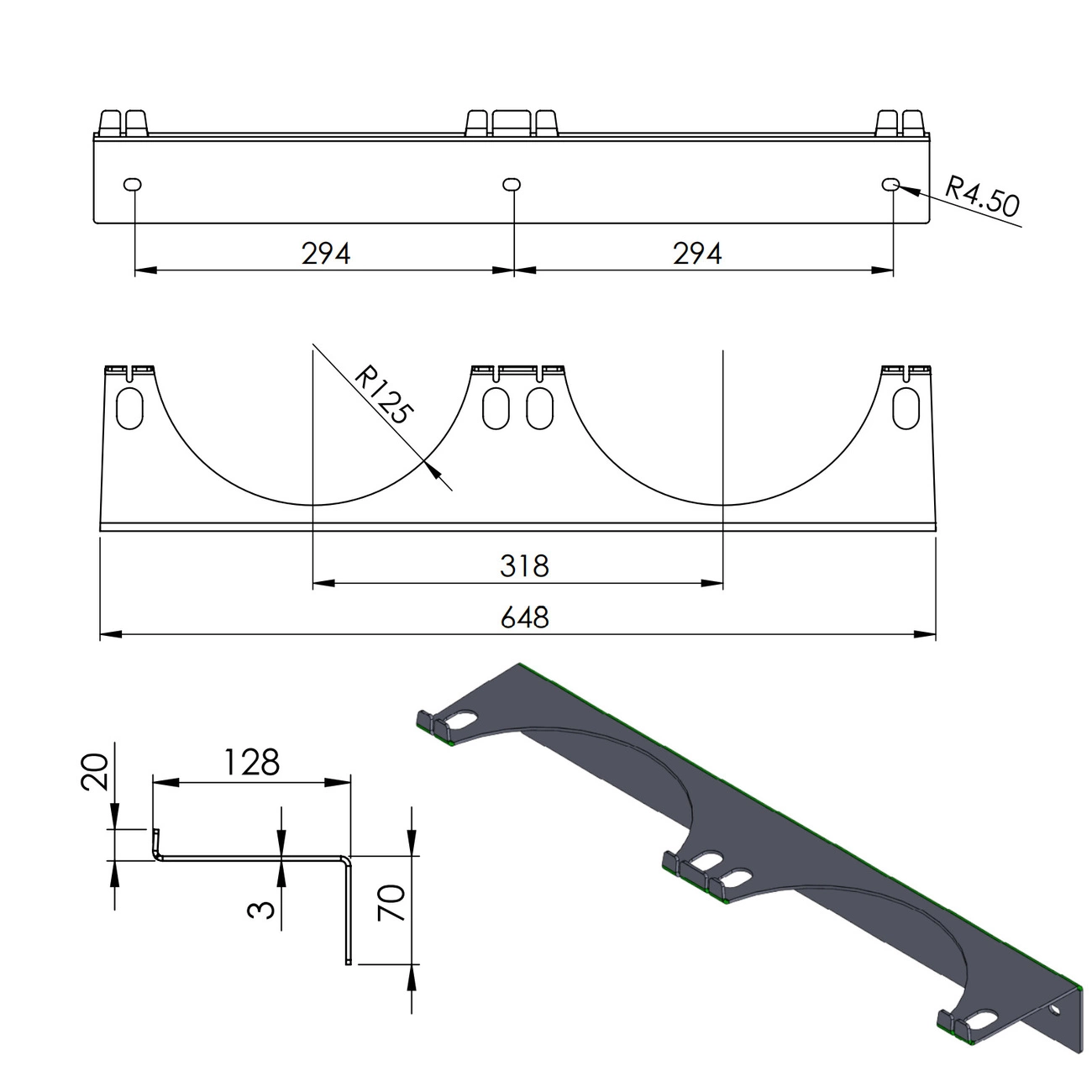 • – Dimensions (LxWxH) – 650 x 125 x 90 mm