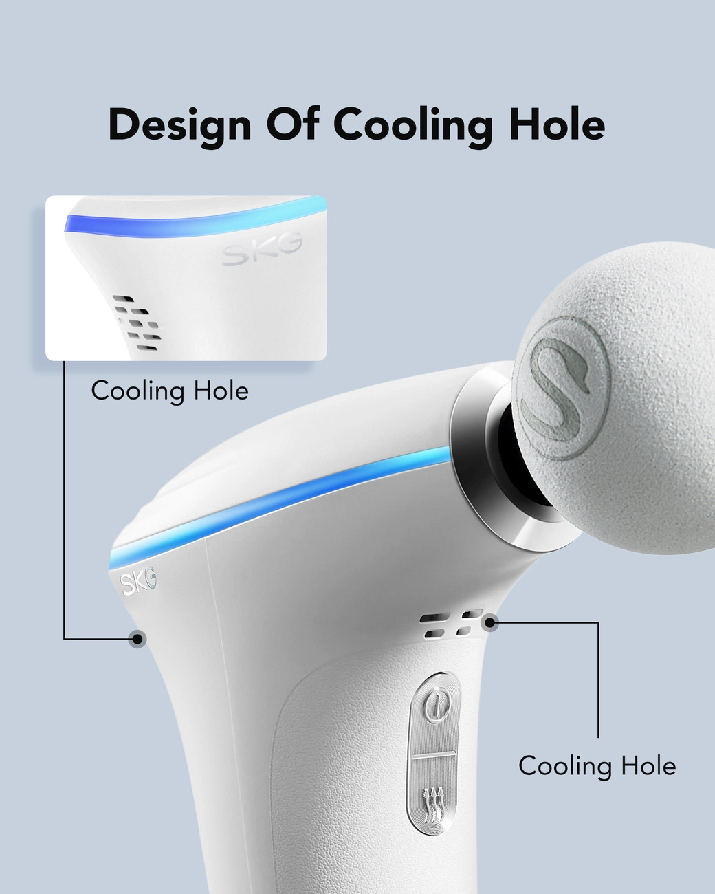 Thanks to the stroke depth of 6 mm , the SKG F5-EN massage gun guarantees that the massage will be effective and will reach the deep muscle layers. This makes the device invaluable in relieving the pain and tension that can build up after days of intense exercise or prolonged sitting.