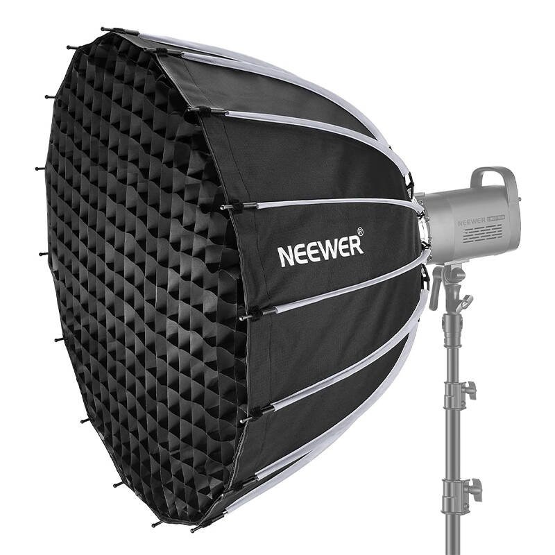 The Neewer softbox features a honeycomb grid that focuses light at a 45° angle, allowing for dramatic lighting effects that perfectly highlight the model’s facial structure. It also comes with two high-quality diffusers that can be freely combined to achieve the desired lighting effect.