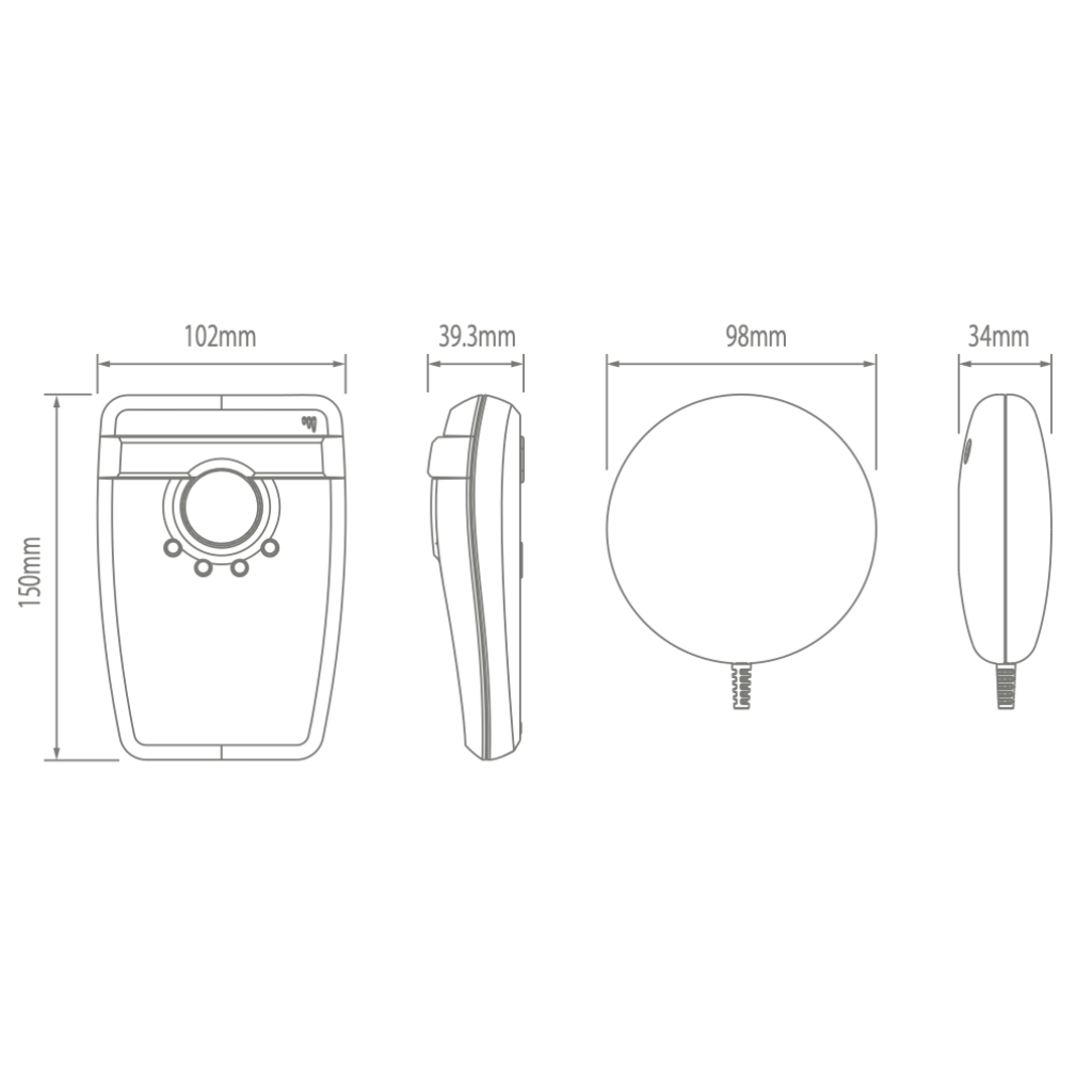 - Matmenys Stroboskopo: 102 mm (plotis) x 150 mm (aukštis) x 39,3 mm (gylis); vibracijos padas: 98 mm (skersmuo) x 34 mm (gylis)