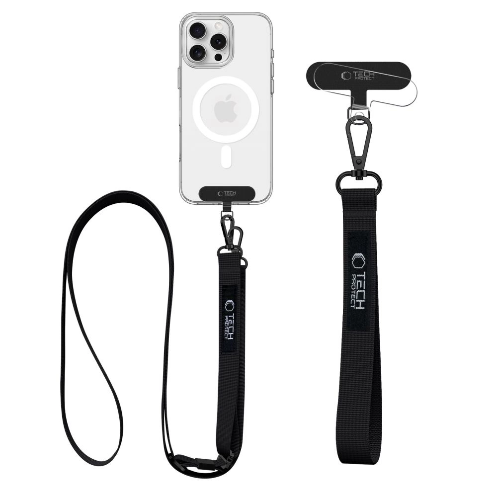 The Tech-Protect C6S 2in1 Lanyard is a versatile accessory designed to safely carry your phone. The set consists of an adjustable neck lanyard and a shorter wrist lanyard, both in a stylish, matching color. The lanyard has detachable clips, allowing you to quickly switch between carrying options.