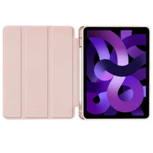 Thanks to the use of a concertina cover on the front side of the case, we gain protection for the display, and thanks to the technology of waking up and putting the device to sleep, we can ensure a slightly longer battery life. The case can also serve as a stand for more convenient use of the device.