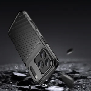 The Thunder Case for iPhone 17 Pro Max is a durable and lightweight cover designed for everyday use. Its flexible TPU construction, weighing just 35g, effectively protects the phone without adding bulk. A 3D texture with raised edges improves grip and gives the case a distinctive look. The matte finish reduces fingerprints and makes the case comfortable to hold. A finely patterned internal structure minimizes the risk of micro-scratches on the device's back cover. This case is for those seeking protection, comfort, and a refined look without compromise.