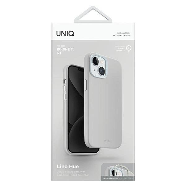 Uniq Lino Hue Magclick Charging dėklas iPhone 15 – šviesiai pilkas