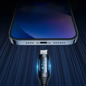 USB-A Cable - Lightning Wozinsky WUALC1 with LED Display 2.4A 1m - BlackUSB-A kabelis – Lightning Wozinsky WUALC1 su LED ekranu 2.4A 1 m – juodas