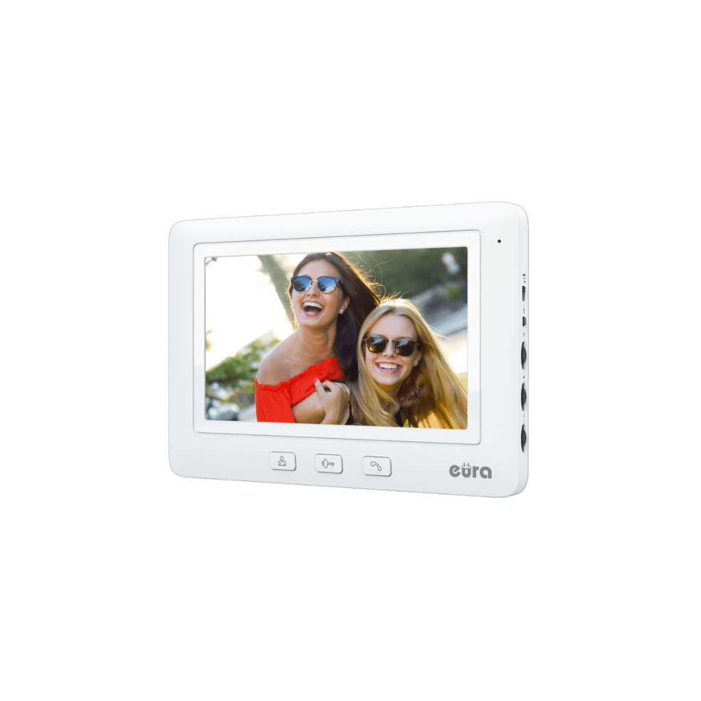 Monitoriuje įrengtas 7 colių spalvotas LCD ekranas. Be standartinių funkcijų – bendravimo su lankytoju, kameros aplinkos peržiūros ir įėjimo į objektą užrakto valdymo – monitorius siūlo ir daug kitų funkcijų. Jame įmontuotas „Wifi“ modulis, todėl įrenginį galima valdyti naudojant TUYA mobiliąją programėlę. Valdymo ratukais galima reguliuoti skambučio garsumą, ryškumą ir vaizdo sodrumą. Virš jų esančiu mygtuku naudotojas gali pasirinkti vieną iš 8 galimų skambučio melodijų.