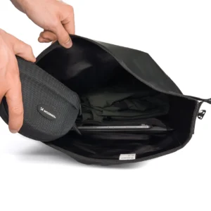 The trunk bag has a very large capacity – up to 25 liters ! You can fit a lot of your things in it: clothes, a bicycle helmet, a water bottle, but also electronic and bicycle repair equipment. Inside the trunk bag there is a pocket, thanks to which you can easily find specific items .