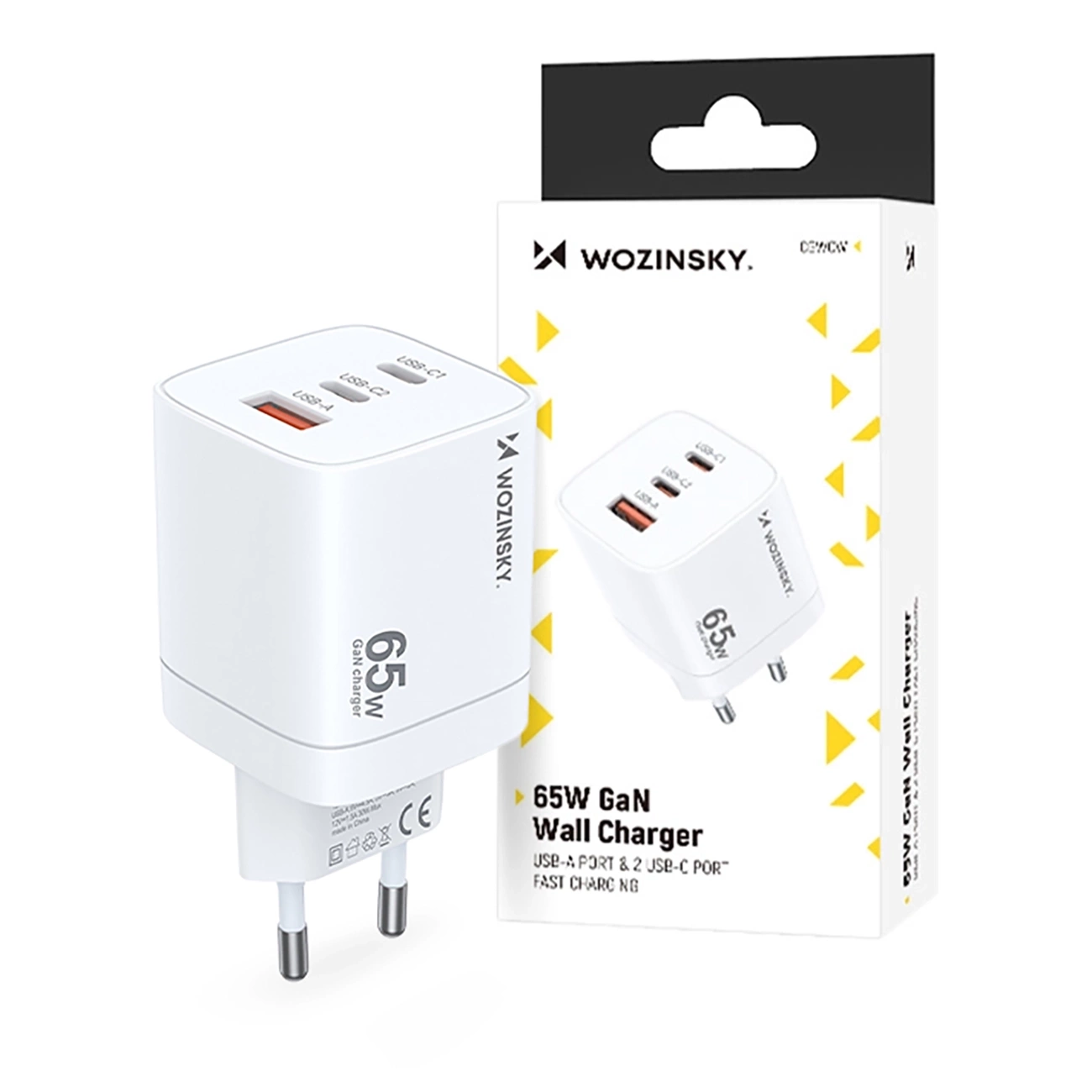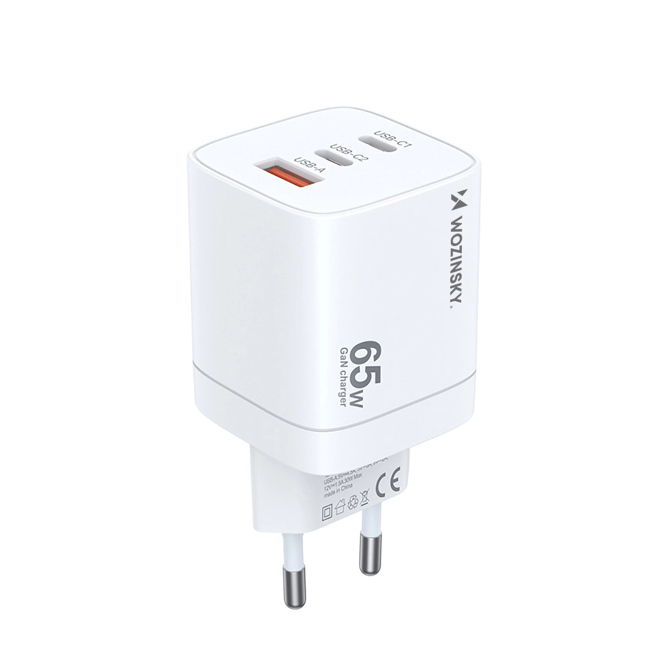 Wozinsky CGWCW 65W USB-A / 2 x USB-C GaN wall charger – white