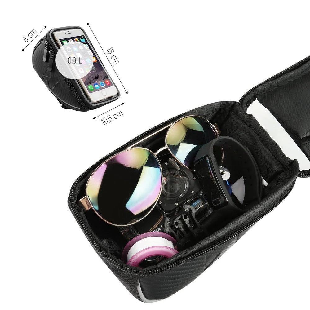 - It will accommodate the most necessary accessories: wallet, keys, glasses . The Wozinsky WBB4BK bicycle handlebar bag has a capacity of up to 0.9 liters