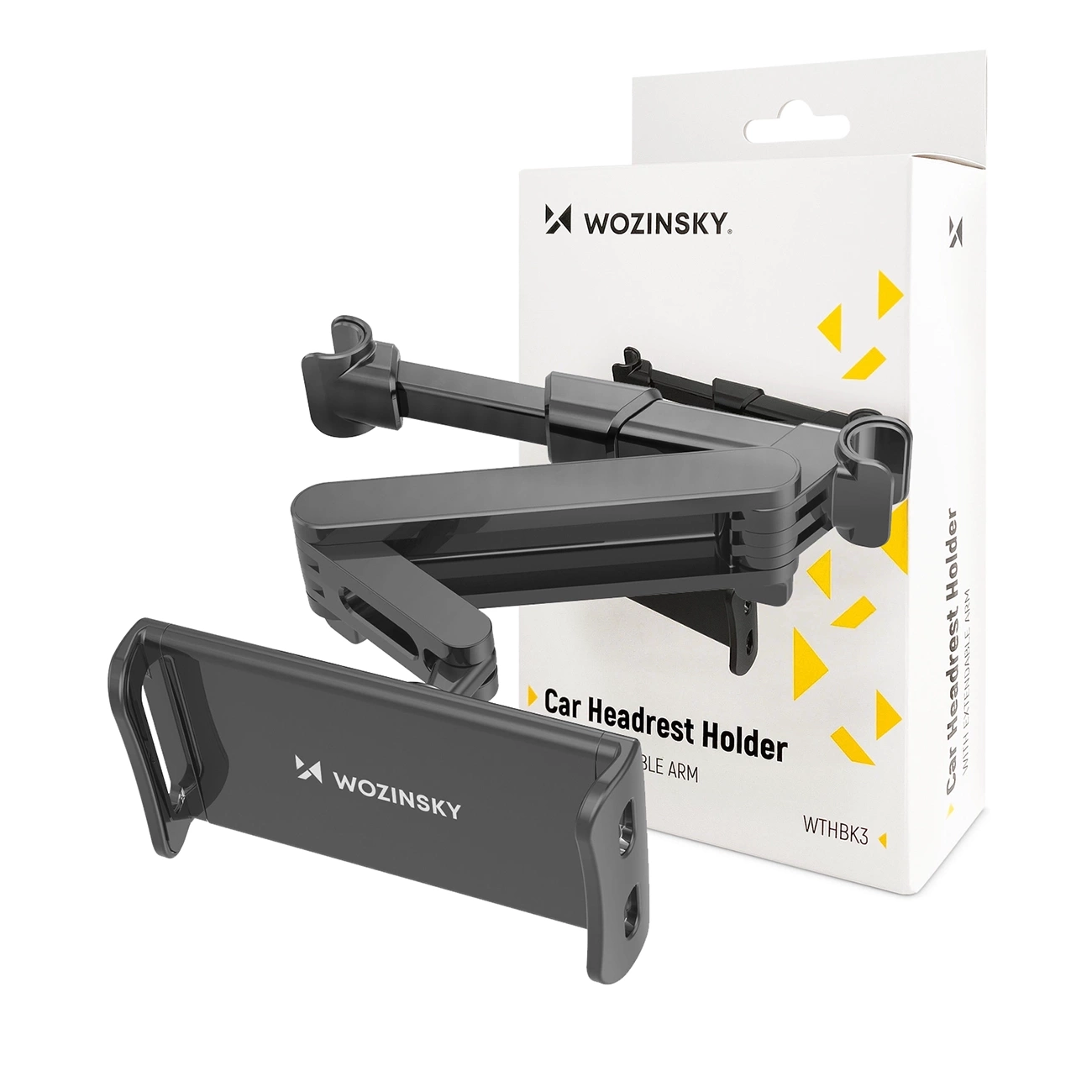 A comfortable solution for anyone taking a long car trip. The Wozinsky WTHBK3 headrest mount is not only universal but also convenient . It fits all tablet or phone models with a diagonal of 4.7-11 inches. It was specially designed to meet the needs of passengers young and old – it has a built-in long arm that can be conveniently bent and folded to adjust the viewing distance from the screen . Importantly, the mount's jaws rotate 360 degrees , making using your mobile device incredibly convenient.