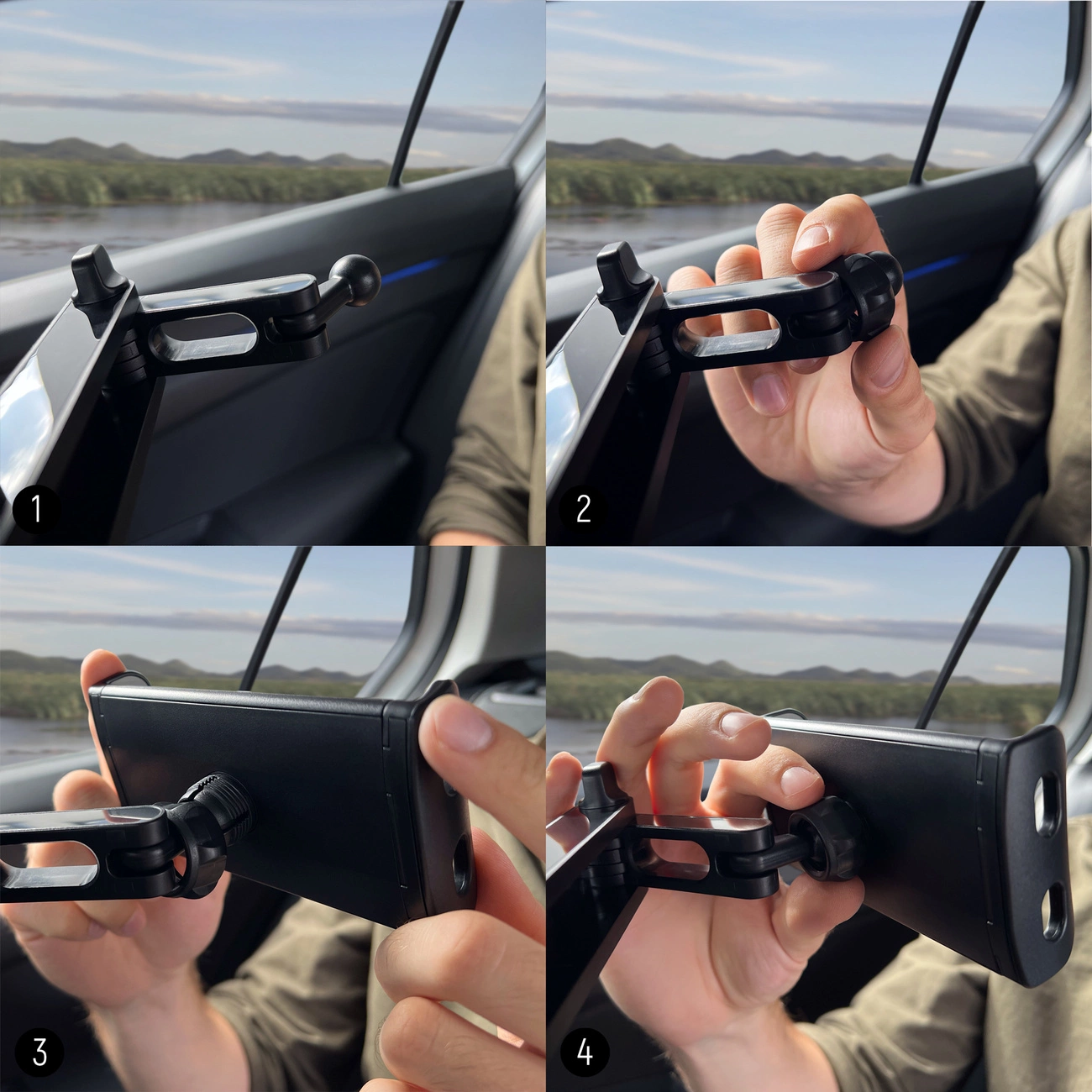 Installing the Wozinsky WTHBK3 mount is incredibly simple . Simply unfold the mounting bracket at the base of the headrest and adjust it to the desired width. No tools or force are required for installation. Your device can be attached to the mount just as quickly. Unfold the jaws and insert your phone or tablet. Done!
