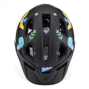 The color scheme and modern design make the helmet visually appealing and emphasize the individual style of the young cyclist, encouraging constant wearing in various riding conditions.