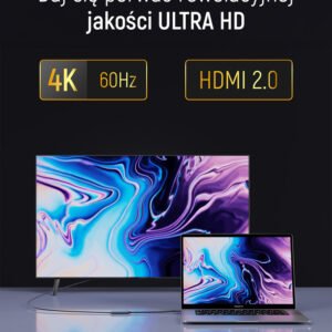 The Wozinsky WACH-01 adapter allows you to quickly and conveniently connect devices with a USB-C port to an HDMI-equipped monitor, TV, or projector. It supports 4K resolution at 60 Hz and Full HD 1080p, ensuring crisp, smooth, high-quality video. Its compact design easily fits into a bag or laptop case, making it the perfect companion for business trips and meetings. The aluminum housing ensures improved heat dissipation, while the nylon braiding increases resistance to wear and damage. It's a practical plug-and-play solution that works without additional drivers or power supplies.