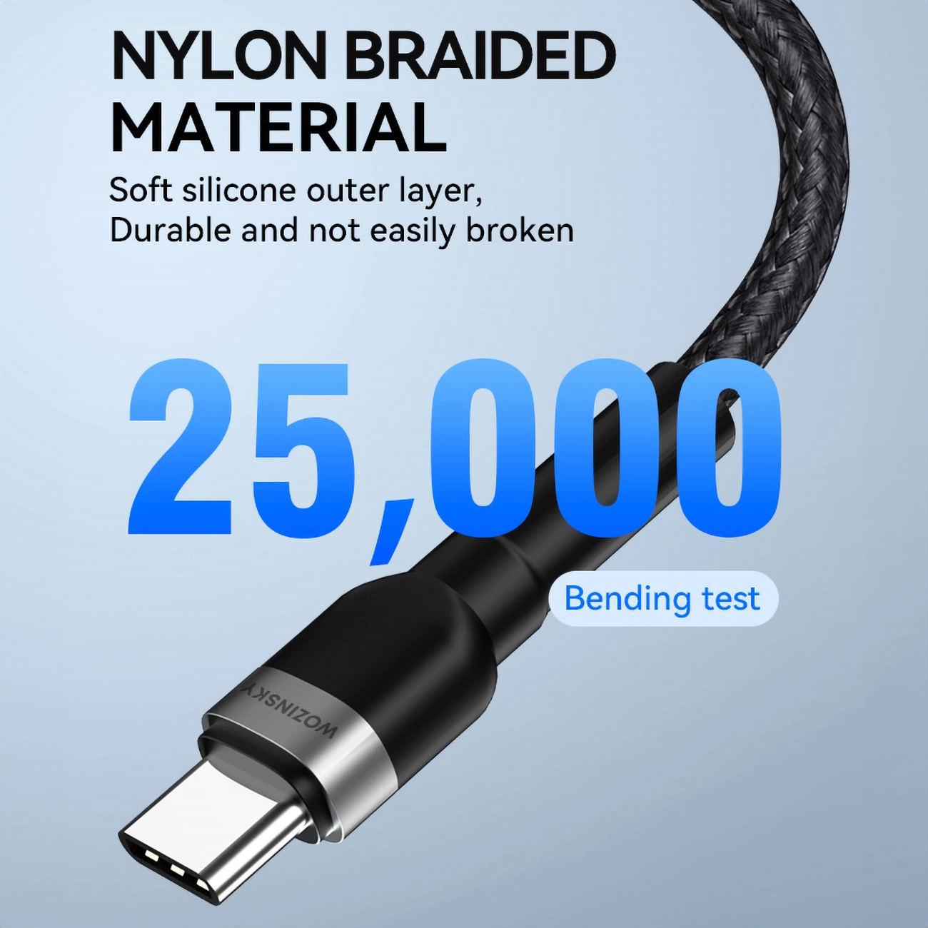 Thanks to the use of a nylon braid The Wozinsky WNBAC1 cable is extremely durable. It can withstand up to 10,000 bends, which significantly increases its service life. The braid not only increases resistance to damage, but also adds elegance and a modern look.