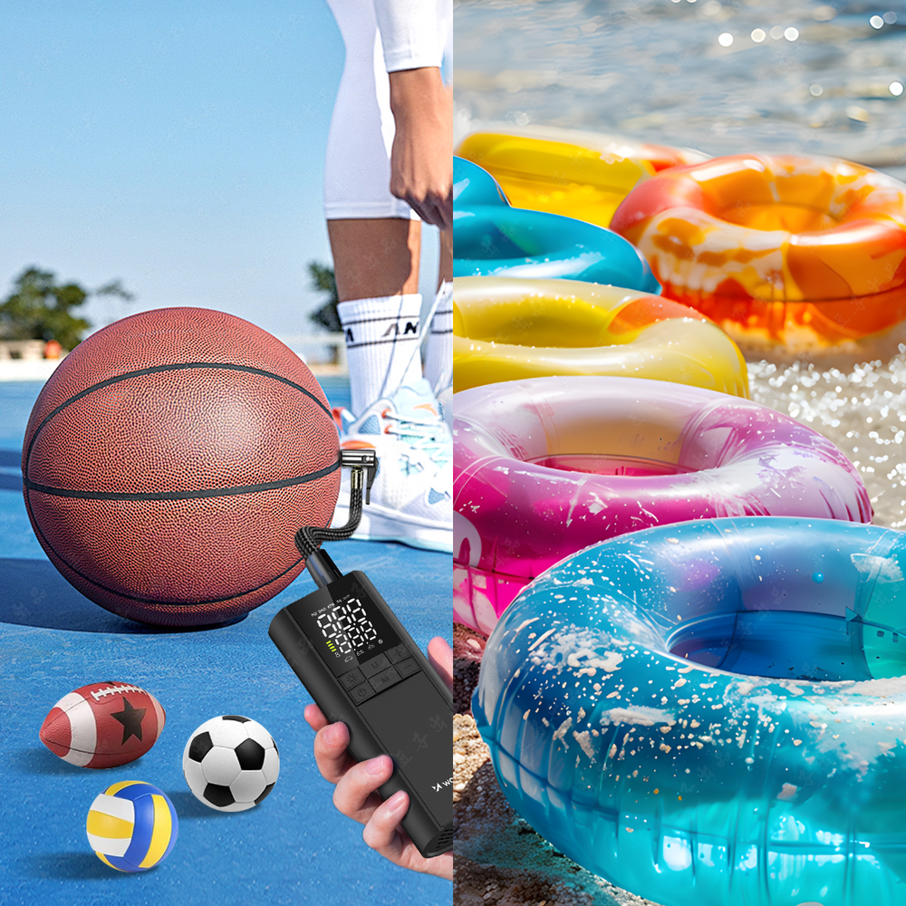 - Multifunctionality: pump, power bank and flashlight in one device.