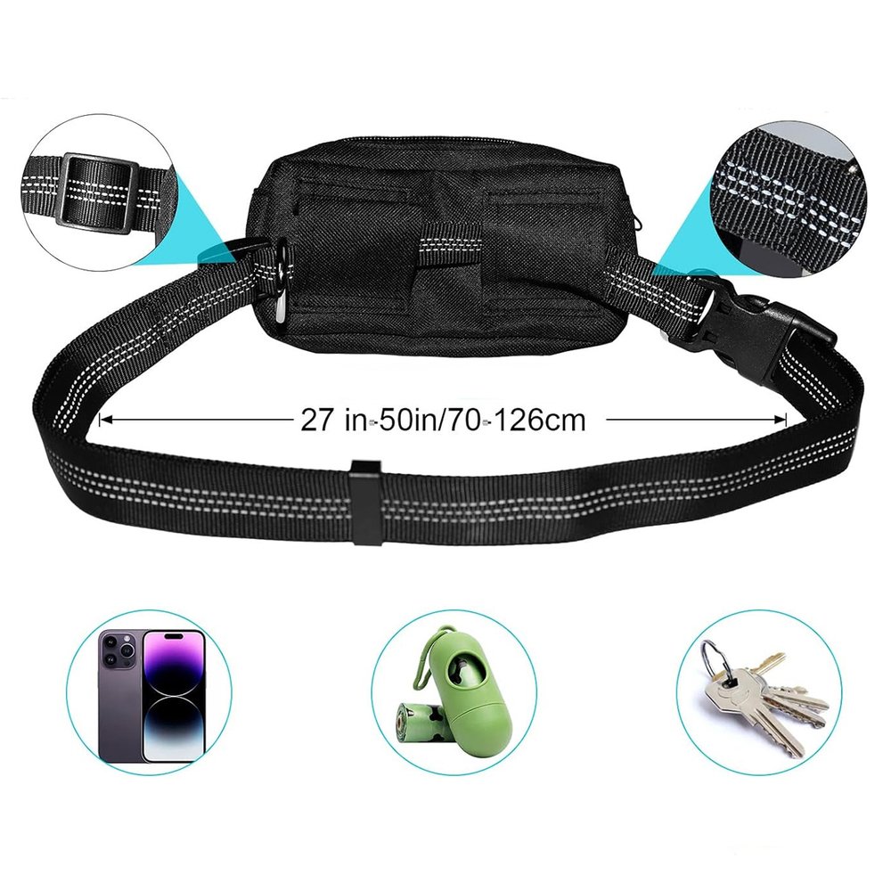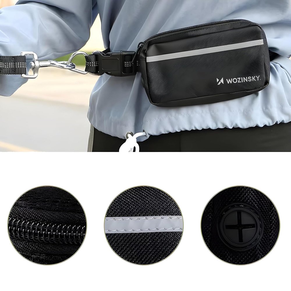 Wozinsky WPST-01 bėgimo diržas su kišene ir elastiniu pavadėliu šuniui – juodas