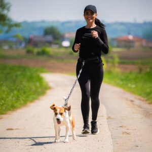 Pas biodrowy pozwala spacerować lub biegać z psem bez trzymania smyczy w dłoni.