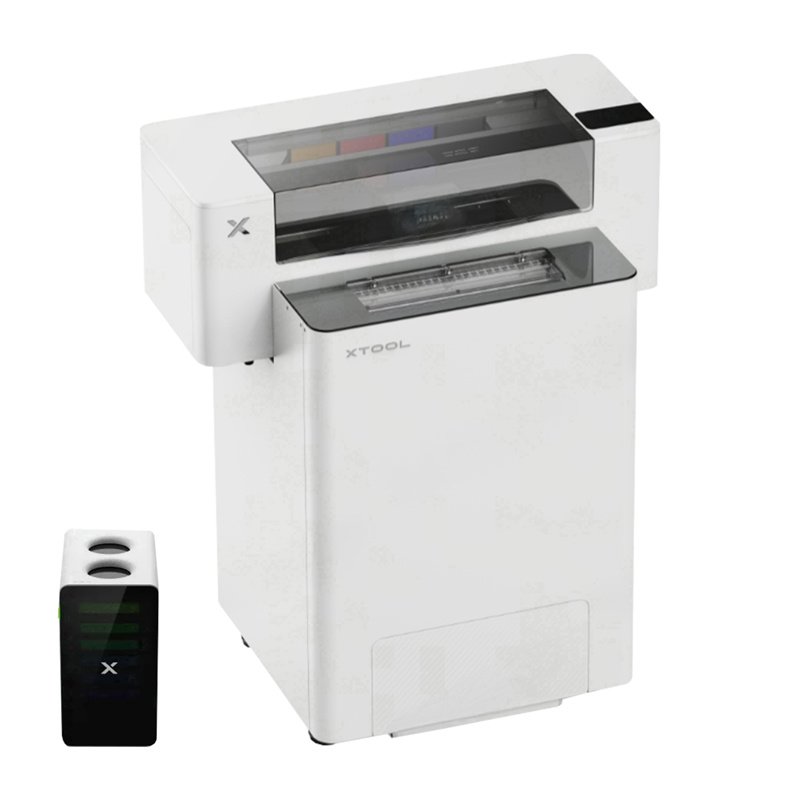The xTool Apparel Printer is an advanced apparel printer designed for professional use in the textile and advertising industry. It can produce permanent, full-color prints on all types of fabrics – from cotton and polyester, to denim and canvas, to spandex, nylon or leather. Unlike sublimation and screen printing, it also allows printing on dark materials, guaranteeing vivid colors and sharp details. The all-in-one kit also includes equipment to support the entire printing and fixing process – the OS1 Automatic Shaker Oven Machine for automatic application and fixing of adhesive powder, and the SafetyPro™ AP2 Air Purifier, an air purifier for removing dust and odors when working with laser and thermal equipment.