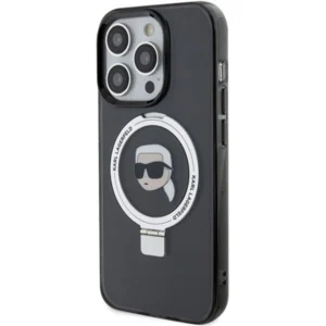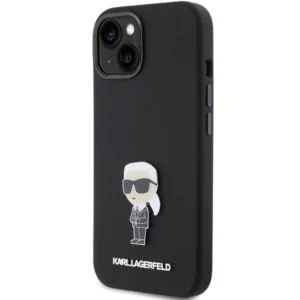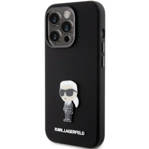 Karl Lagerfeld Odinis monogramos metalinis logotipas dėklas iPhone 15 Pro Max – rožinis